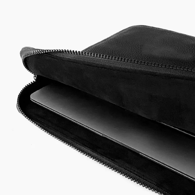 Estuche de cuero vacuno graneado con nuevo cierre y tira cierre de marca YKK. El estuche sirve para llevar documentos y laptops de hasta 15 pulgadas. Interior forrado en microfibra  con relleno de espuma poliestireno para protección.