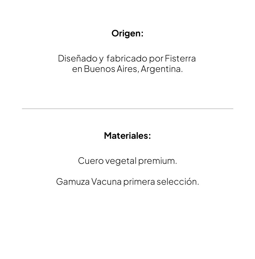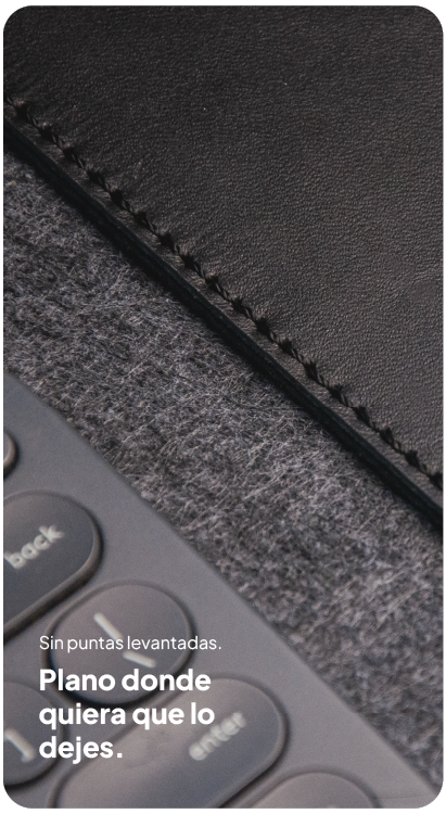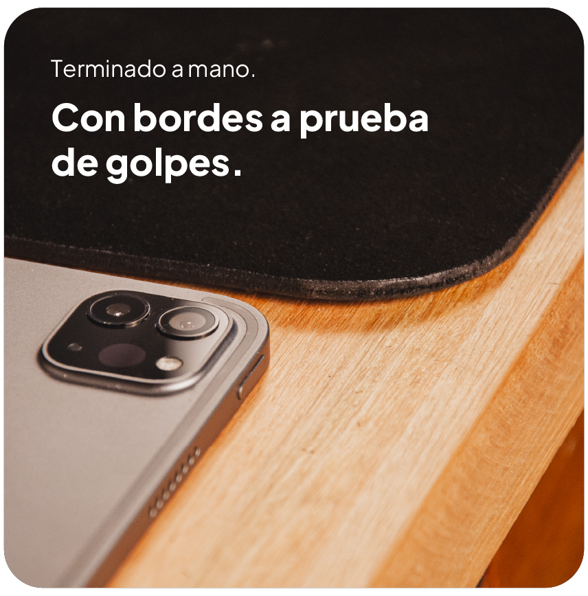 Usamos gamuza natural. Es decir, al igual que el cuero es de origen animal. La gamuza es el cuero sin flor, sin tratamientos y tiene la particularidad de adherirse a superficies muy lisas. Va a ser casi imposible que se resbale de la mesa, o si usas el pad de revés, no vas a poder mover el ipad.