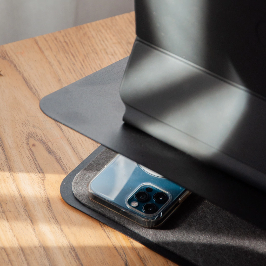 Conseguí la altura ideal con un soporte compacto que cabe en los espacios reducidos de tu escritorio. Con espacio para ordenar el cargador y topes de fieltro que protege y amortigua tu laptop. Tu relación con el escritorio va a cambiar, tu postura frente a la notebook y al trabajo no van a ser la misma.